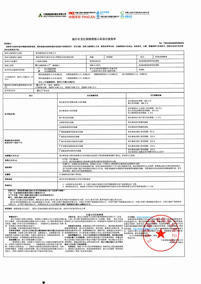 依法繳納旅行社責(zé)任保險(xiǎn)是企業(yè)的義務(wù),也是企業(yè)對(duì)游客安全出行的保障承諾,郴州麗景旅行社有限公司2021年度旅行社責(zé)任保險(xiǎn)已購(gòu)買,請(qǐng)廣大游客選擇正規(guī)旅行社,放心出游!