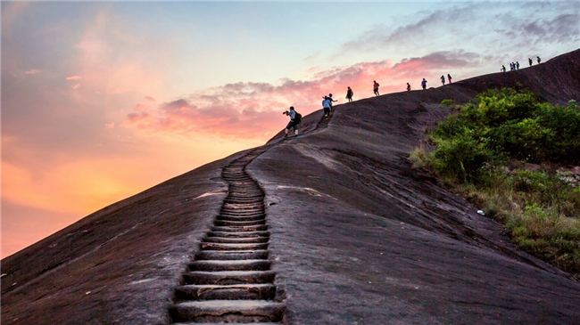 高椅嶺紅巖綠水,赤壁丹霞,,峽谷奇洞組成了“四面青山列翠屏、草木花光盡是香”的奇異丹霞地貌,是一個(gè)賞之叫絕、百走不厭的戶外休閑攝影勝地,丹霞地貌發(fā)育于紫紅色砂巖和礫巖之上,景觀多為方山,渾園平頂,四壁懸崖陡峭,巖腳陡坡辟有磴道。其形狀千姿百態(tài),風(fēng)景絢麗迷人。據(jù)此,有人評(píng)價(jià)郴州的丹霞景觀為“世之所有,此盡有之” 大旅行家徐霞客曾贊嘆它“無寸土不麗,無一山不奇”并鐫刻“寸土佳麗”。