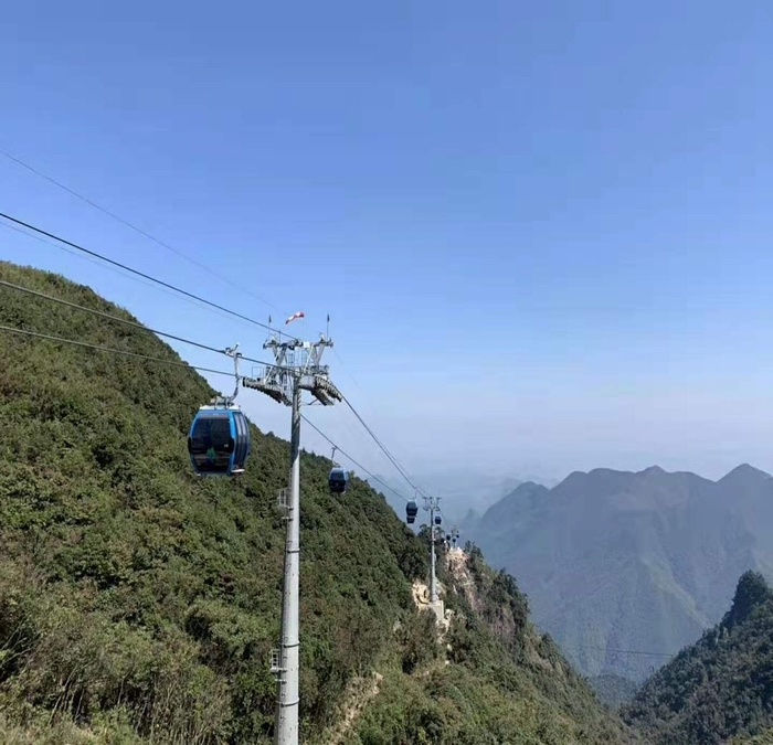 莽山五指峰索道,自?shī)W地利多貝瑪亞公司引進(jìn),采用全國(guó)最先進(jìn)自動(dòng)化控制系統(tǒng),是目前全國(guó)最長(zhǎng)的單線循環(huán)拖掛抱索道8人吊廂的索道,索道線路斜長(zhǎng)3.7公里;上下站高差1000米,共有吊廂92個(gè);鋼絲繩達(dá)58毫米。每小時(shí)單向運(yùn)量達(dá)2000人。